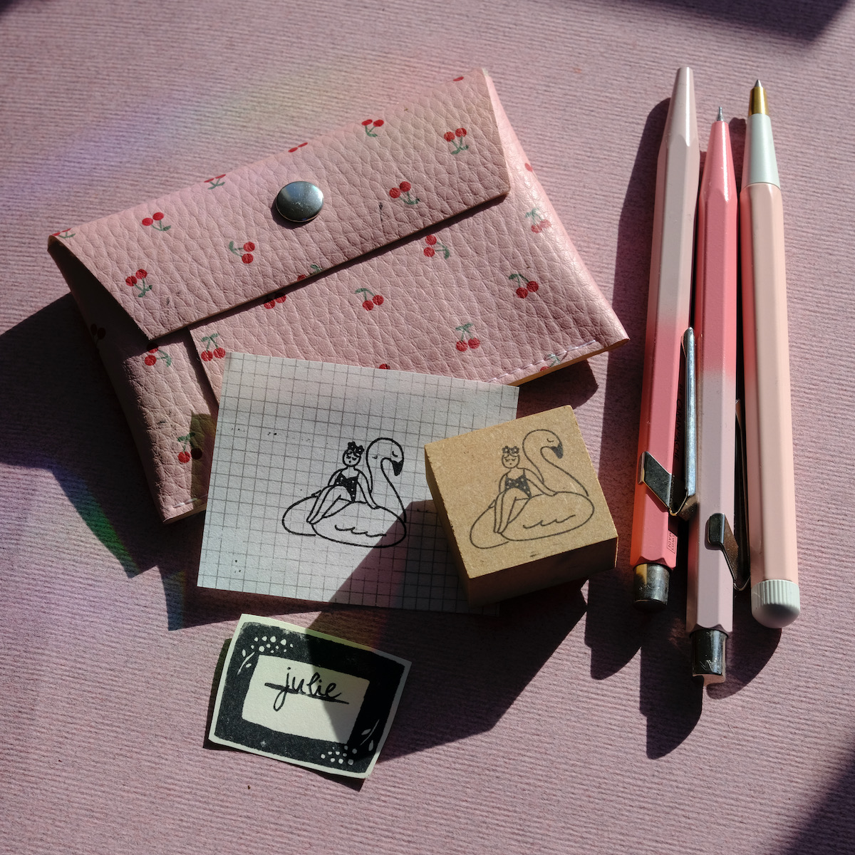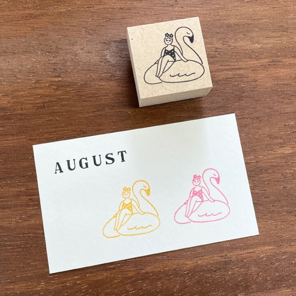 Une collection de timbres magnifiques représentant Marle-Chan, la fille des créateurs de Stamp Marché, la marque de tampons japonais, à différents moments de la journée. L’été, flottant sur sa bouée cygne. Les tampons, si poétiques, seront parfaits pour toutes les occasions, que vous envoyiez une lettre à un ami ou que vous décoriez votre journal.